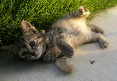 先日に書いた、俺んちの庭にいた子猫。あれからもうどうしても居ついてしまい、正式に飼う事に決めました!