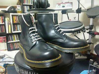 もちろんパンクロッカーが履くブーツといえばコレ、おイングランド製の一流ブーツメーカー、ドクターマーチン社のものでございますよ。