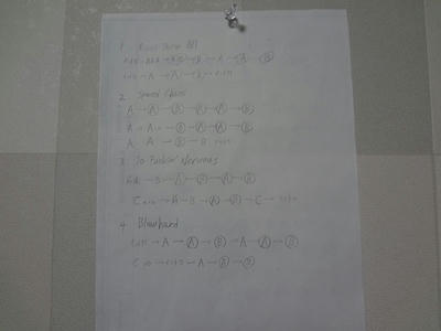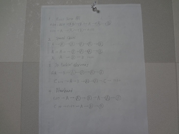 自分なりの楽譜じゃないけどさ。曲の構成、進行を紙に書いてました。