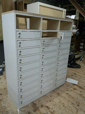 おまけにこいつは、通気性の都合で中の棚板は全部くり抜いてあるし、30枚ある扉に鍵は付けるしで、いやーホントめんどくさかった。