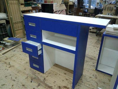 お仕事。最近作った家具。どこかの病院で使われる机みたい。