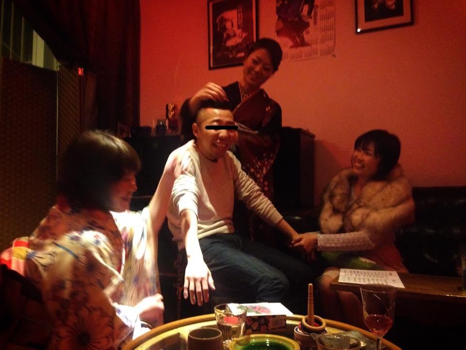 着物を着た女の子たちに囲まれてお酒を飲んできました。