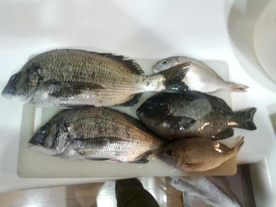 小っちゃい真鯛が釣れてメジナが釣れて。