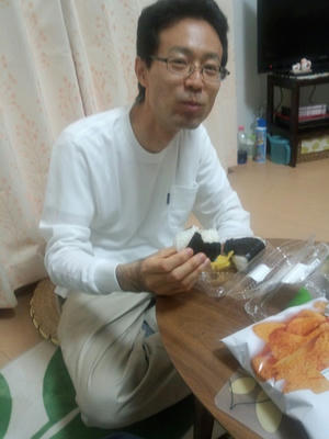 おにぎりを食べるちゃち(←あだ名)最近登場頻度高め。