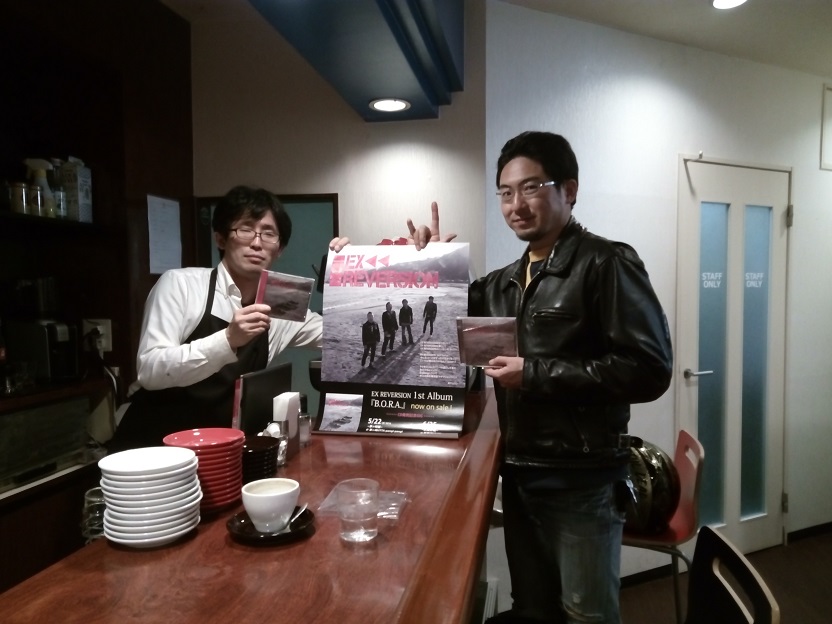 バンドのCD発売と、レコ発ライブのポスターを貼ってもらいに。