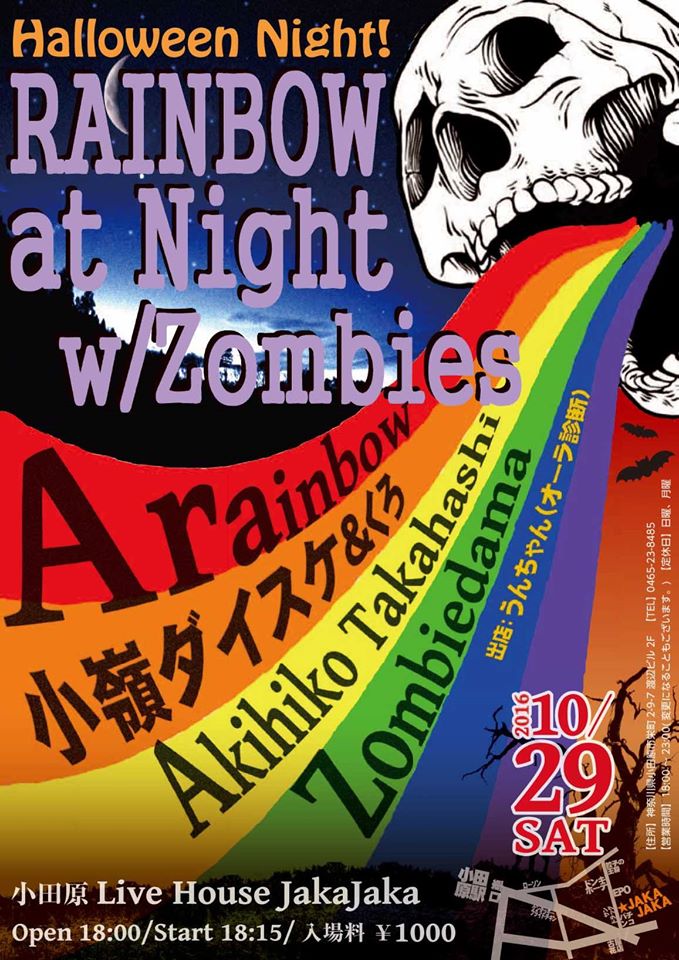 今週末。29日の土曜は小田原ジャカジャカで、Zombiedama さんが出演するライブがあるので見に行こうと思っています。