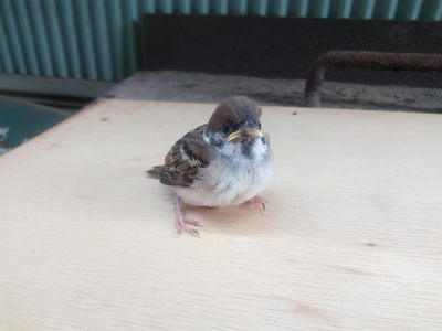 巣立ちの時期で、上手く飛べない子が落ちちゃうことがたまにあるんだってさ。