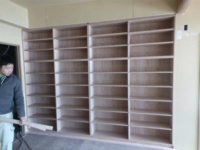 地域の公民館の改装してて、食器棚を作りたいって話。