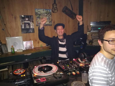FUROUJI のドラマーとDJとしても活躍のおだじーさん。(あともう1人DJでカバさん)