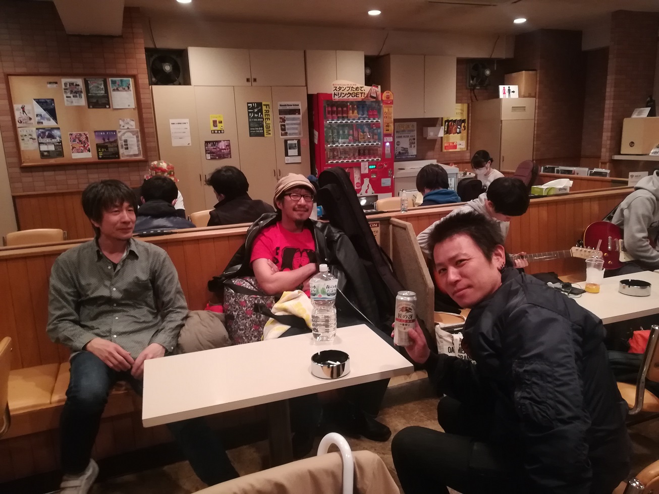 しばらくヘルプでベースを弾いてくれる初期メンバー、むつみくんを招いて4月7日のライブのために。
