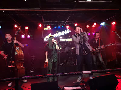 1バンド目に出た WILD RAVIN' さんという、お父さんと娘さん。もう1組お父さんと息子さんでやってる(!)ロカビリーバンドのお父さんがいたく褒めてくれて。