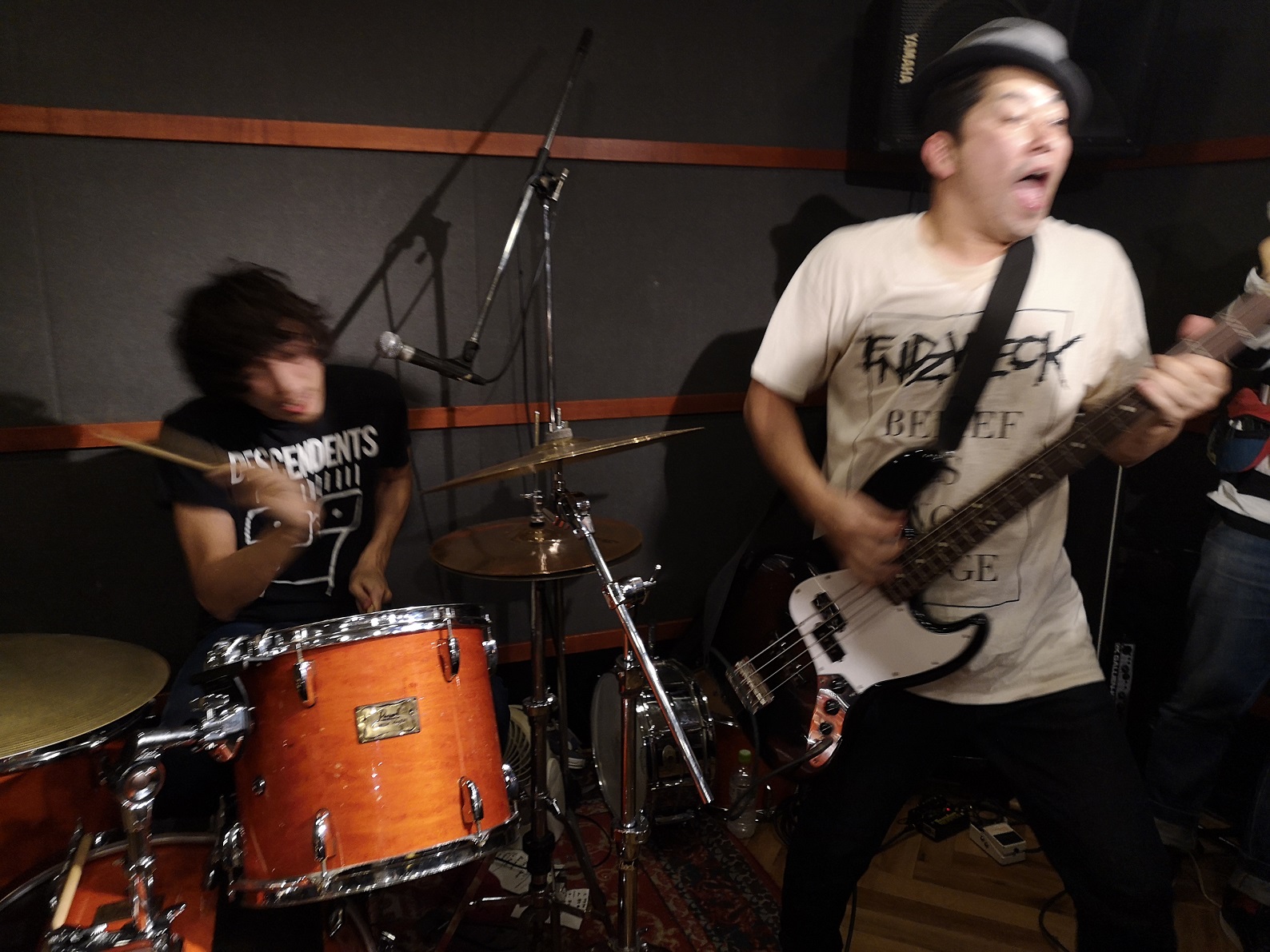 ベースの音をギターアンプ、ベースアンプから同時に出し、もの凄いパワーのドラムとドスの効いたボーカル!