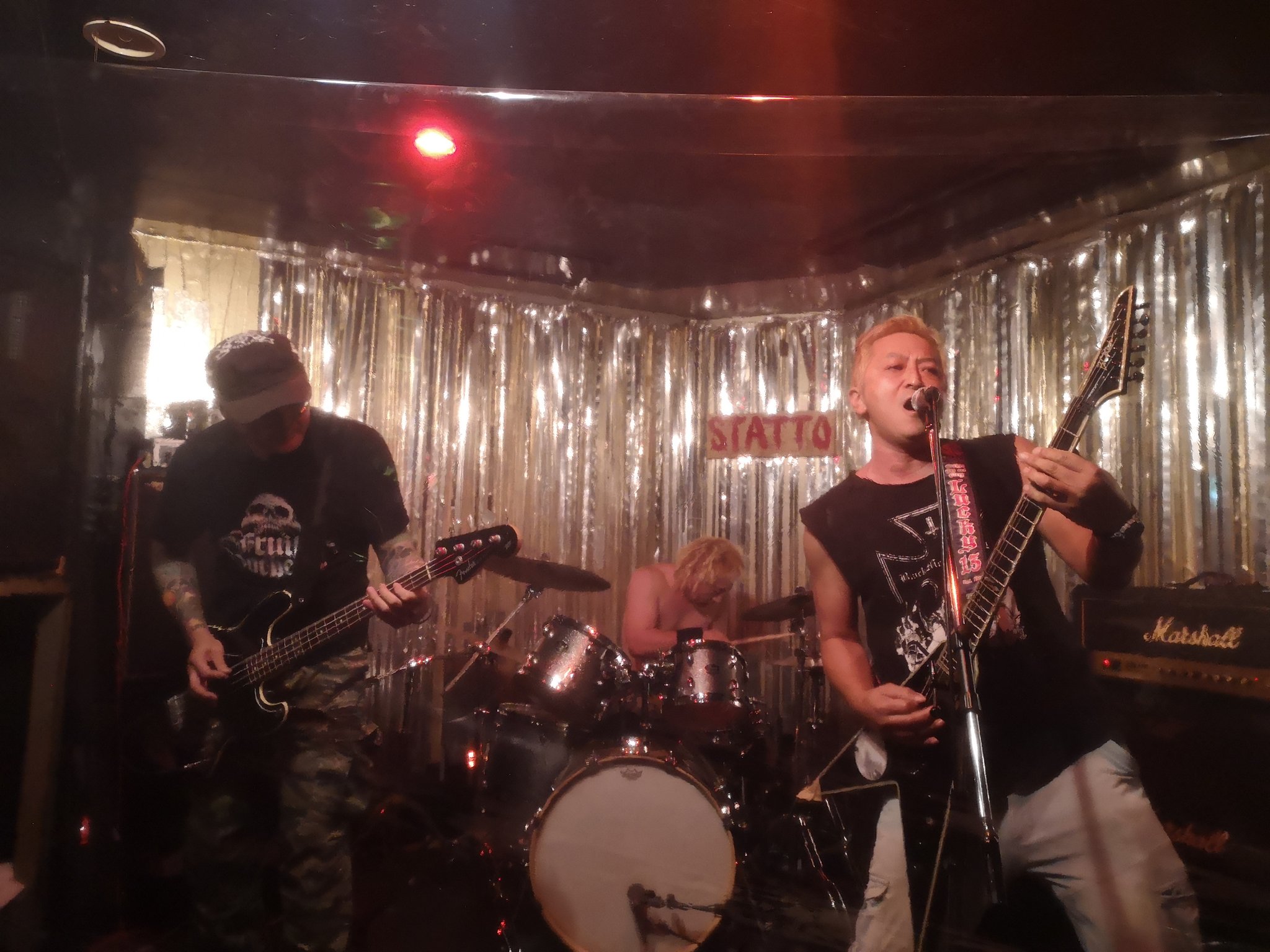 後藤ご夫妻のギター、ベースに、VoはD4のヒロシくん。ドラムにスタットのカトちゃん!