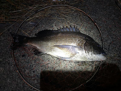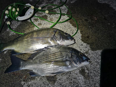 黒鯛。日が沈む前に1匹。完全に暗くなってから1匹。