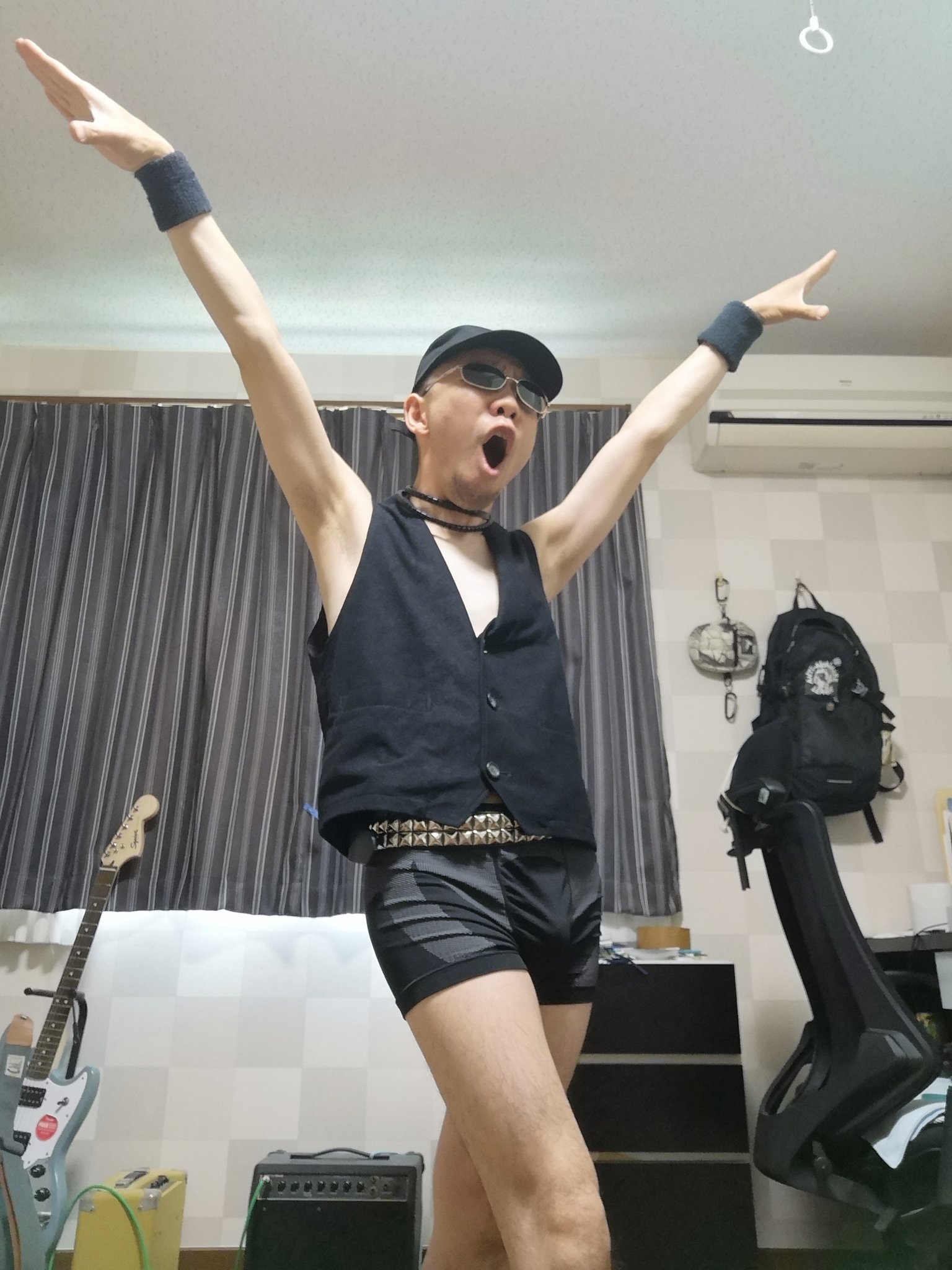 スーツ着て THE JAM の In The City に合わせて大げさにギターを弾く、なんて動画をスマホで録ってみました。