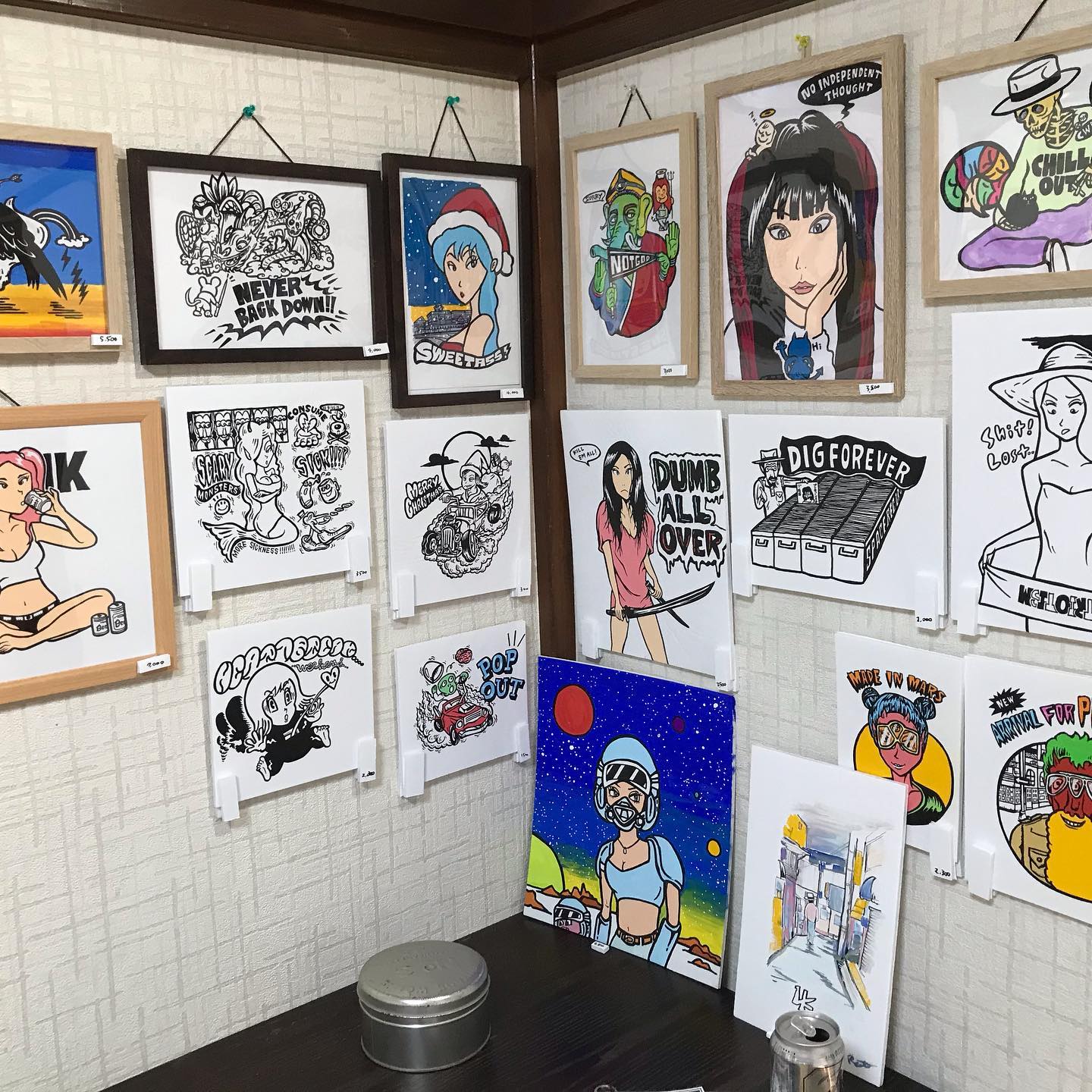 土曜。2年前くらいかな?に知り合った小田原の音楽通、にしてライブのフライヤーなどの絵を描いているリョータくんの個展が鴨宮であるというので行ってきました。
