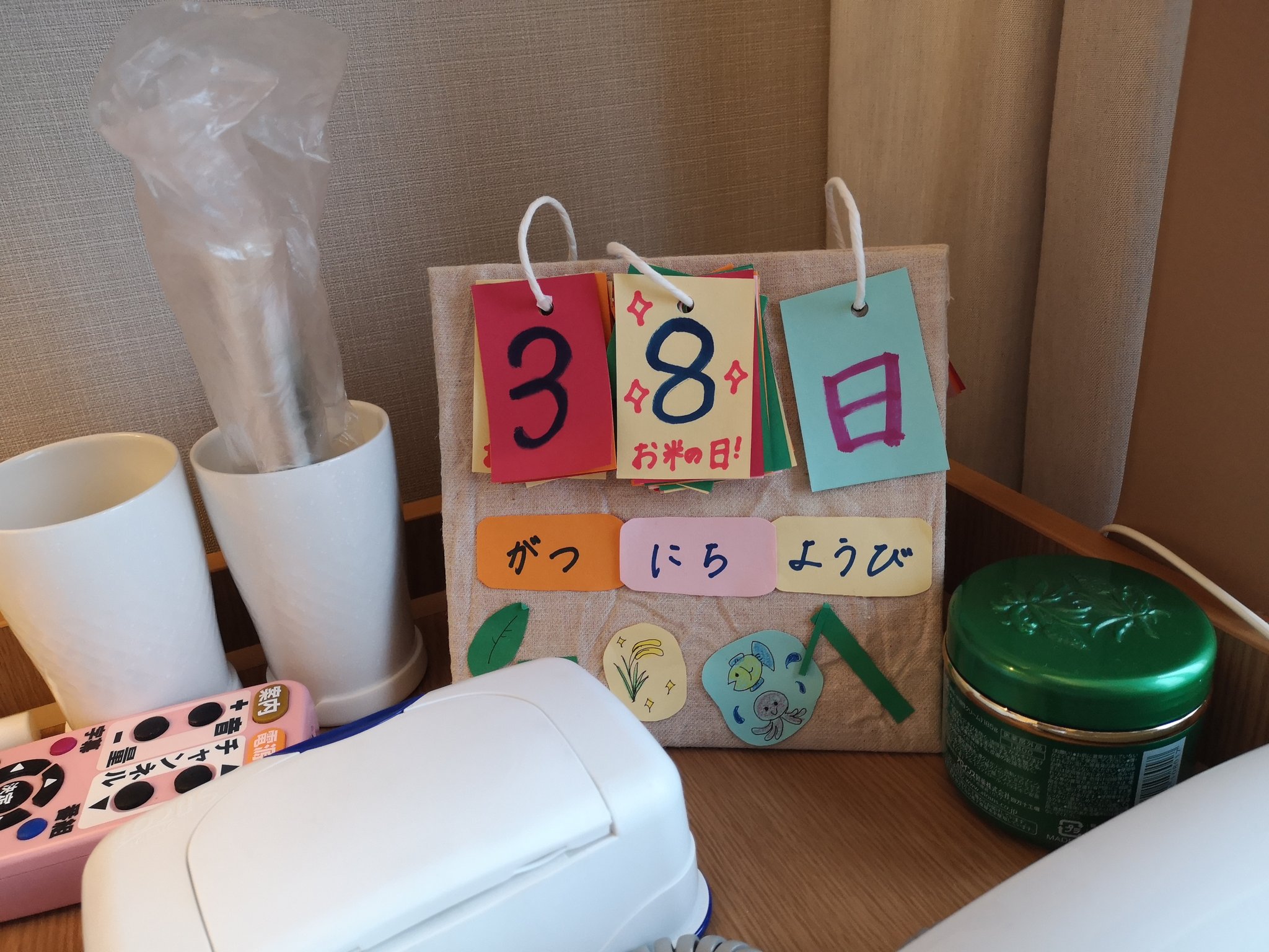 勉強しながら面倒を見てくれている看護学生さんに「こう長いこと入院してると今日がいつだか分からなくなる!」なんて抜かしたらしい。