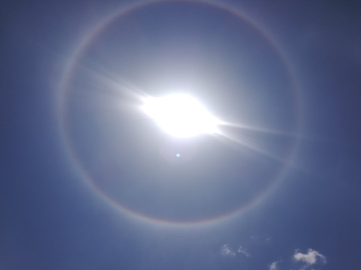 太陽を囲むように虹が出てた!これスマホの待ち受けにしたら幸運になりそうじゃない?(笑)