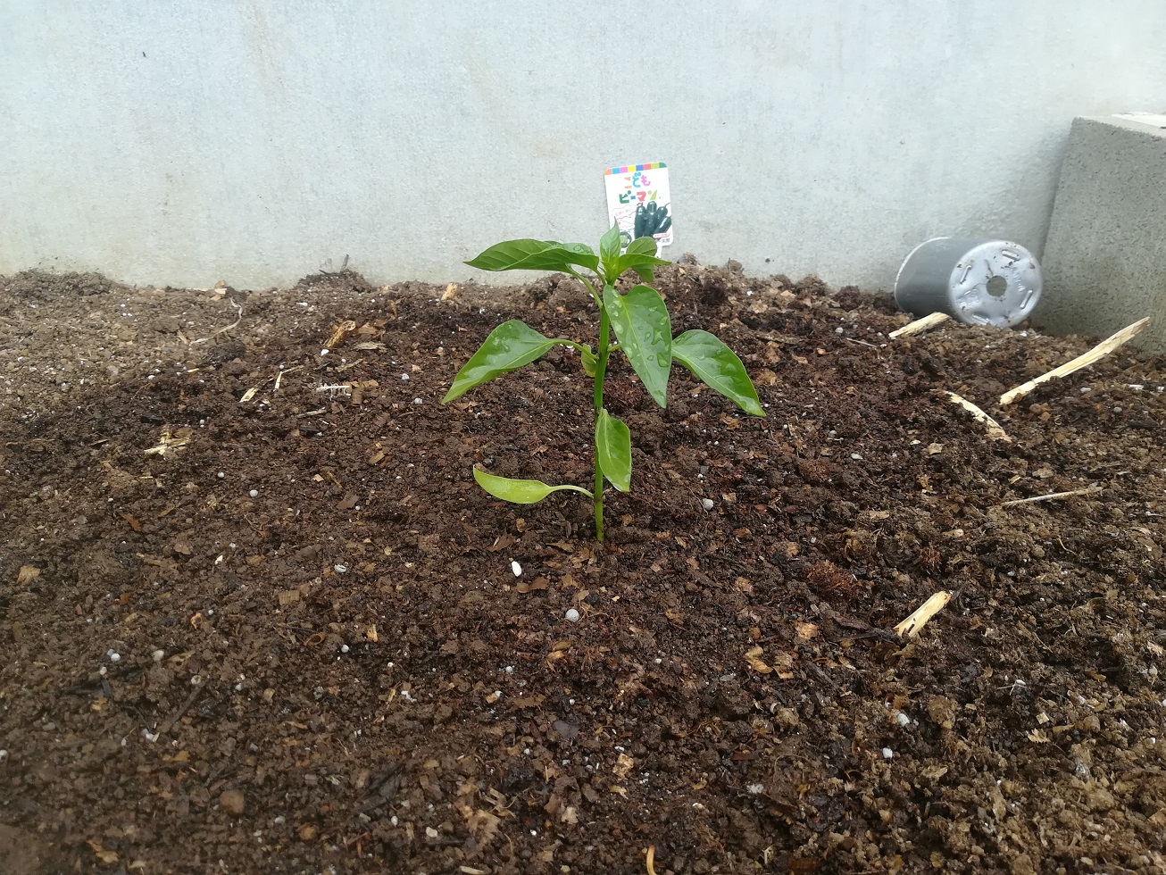 GW最終日は、職場の花壇にピーマンの苗を植えたりしてました。