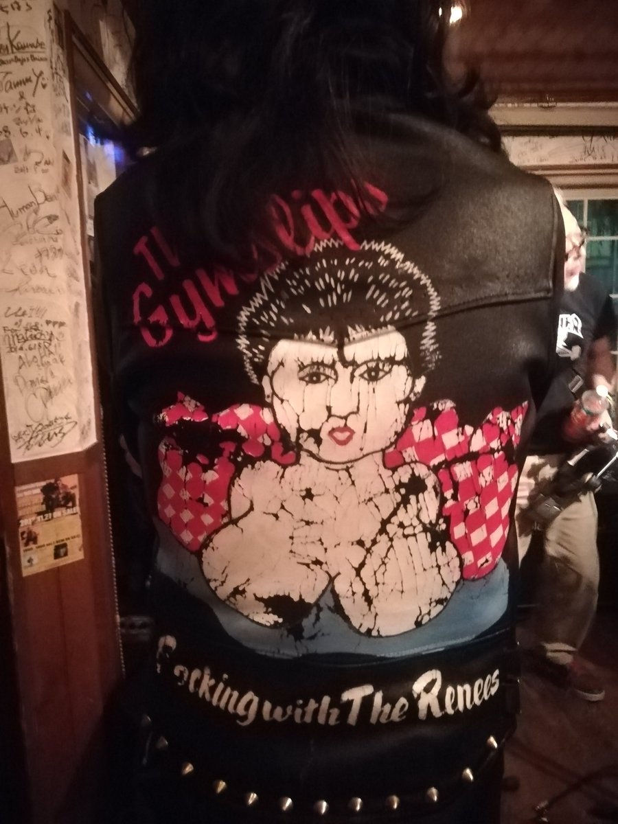 革ジャンのペイントが GYMSLIPS のお姉さんがいらして、感動して写真撮らせてもらった。