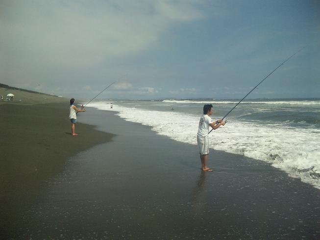 浜から投げ釣り挑戦中のご夫妻。なんかいいでしょ?