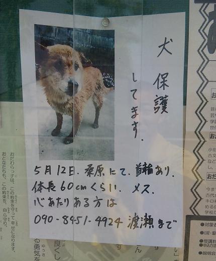 先日の犬を預かってもらっている動物保護センターから、今のところ飼い主が現れた、つー連絡はありません。