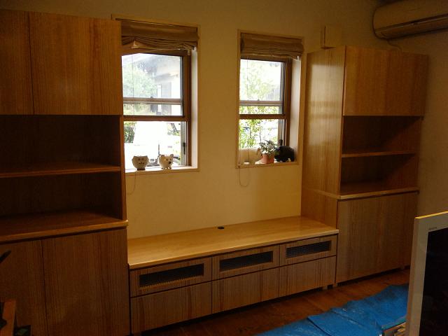若いご夫婦の依頼で、テレビ台とキャビネットを作りました。
