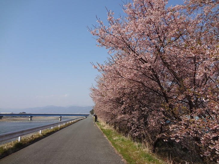 その堤防に早咲きの桜(河津桜かな?)が植えられてて、毎年早い時期に桜が見られます。