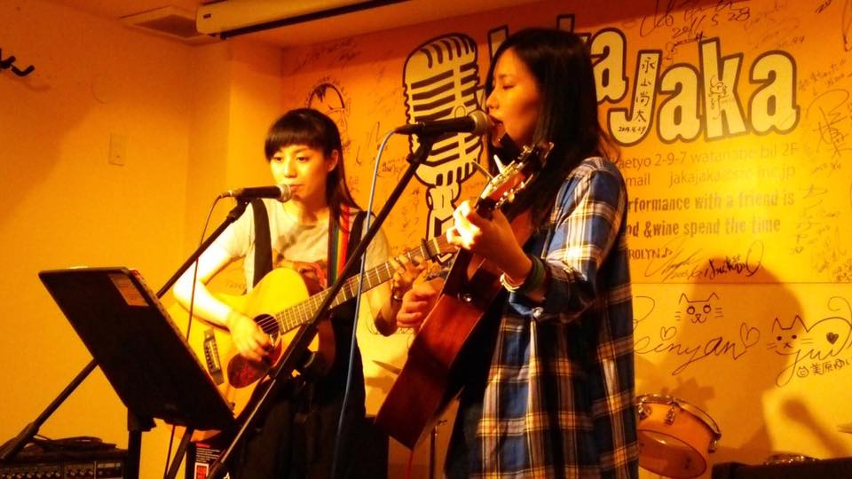 可愛らしい女の子2人が、ギターを持って歌うライブです。ぐへへ。