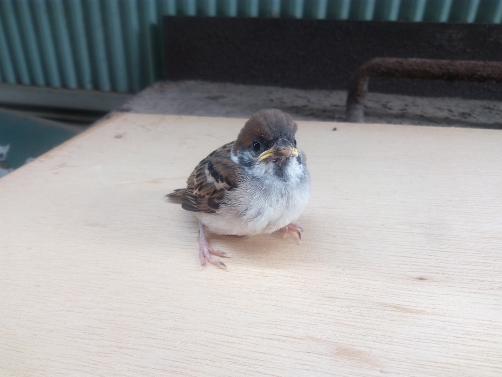 職場の裏にスズメが落ちてました。