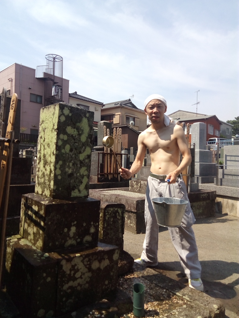 半裸ですっげー古いお墓を掃除する色白さんの写真でお別れ。