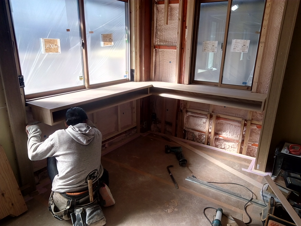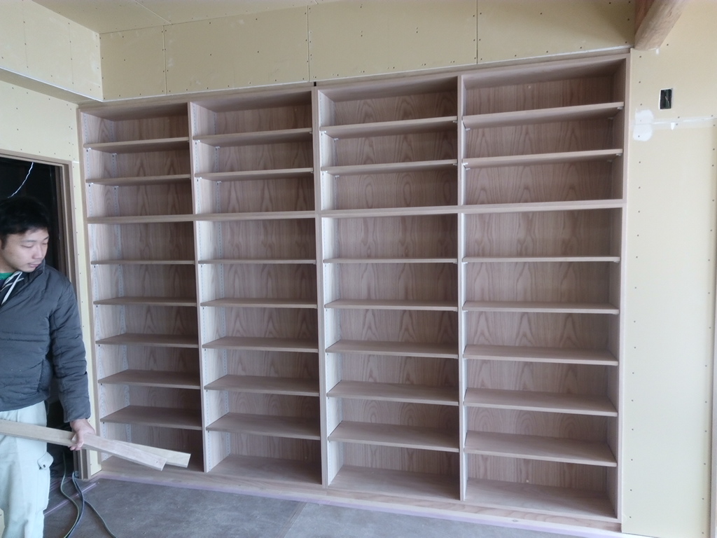 地域の公民館の改装してて、食器棚を作りたいって話。