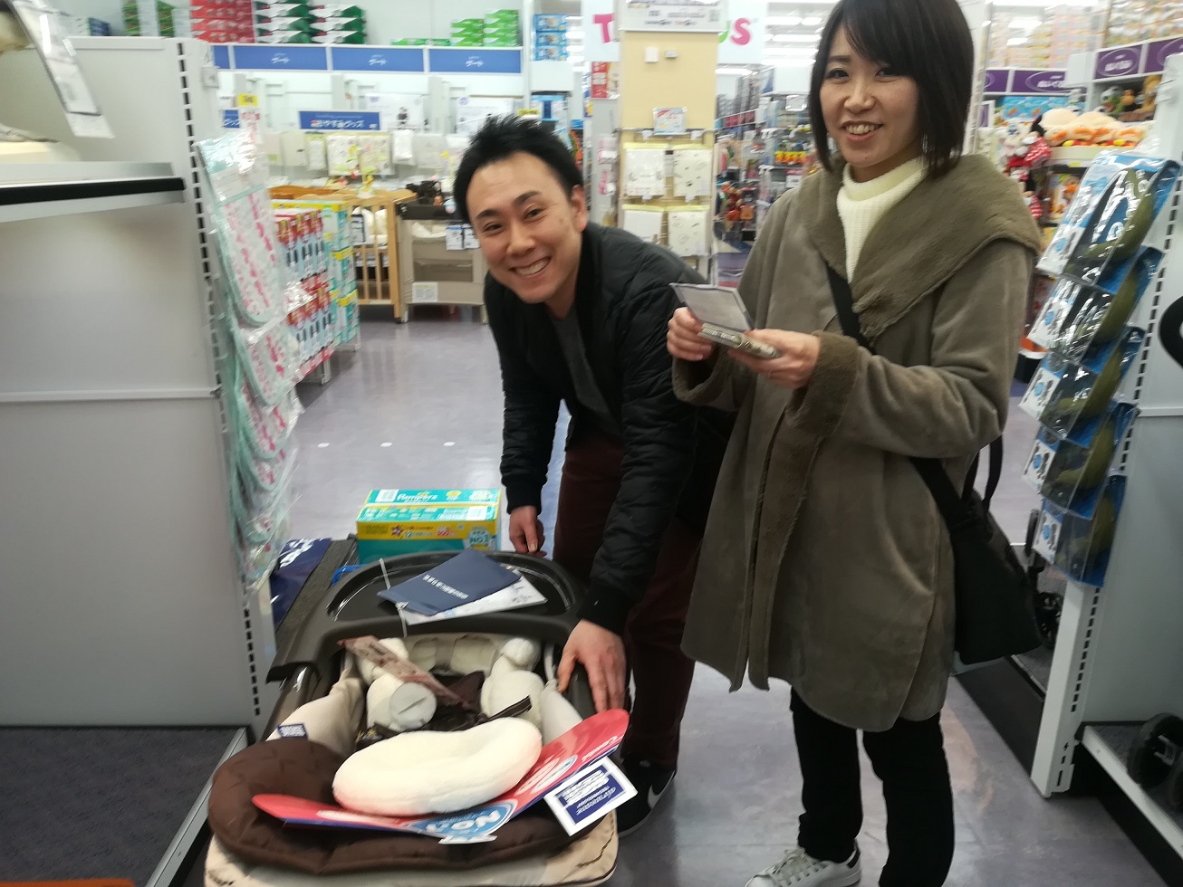 先月産まれたお子さん(俺と同じ誕生日!)のおむつやら粉ミルクやら買うというので、後ろからくっついて行きました(笑)