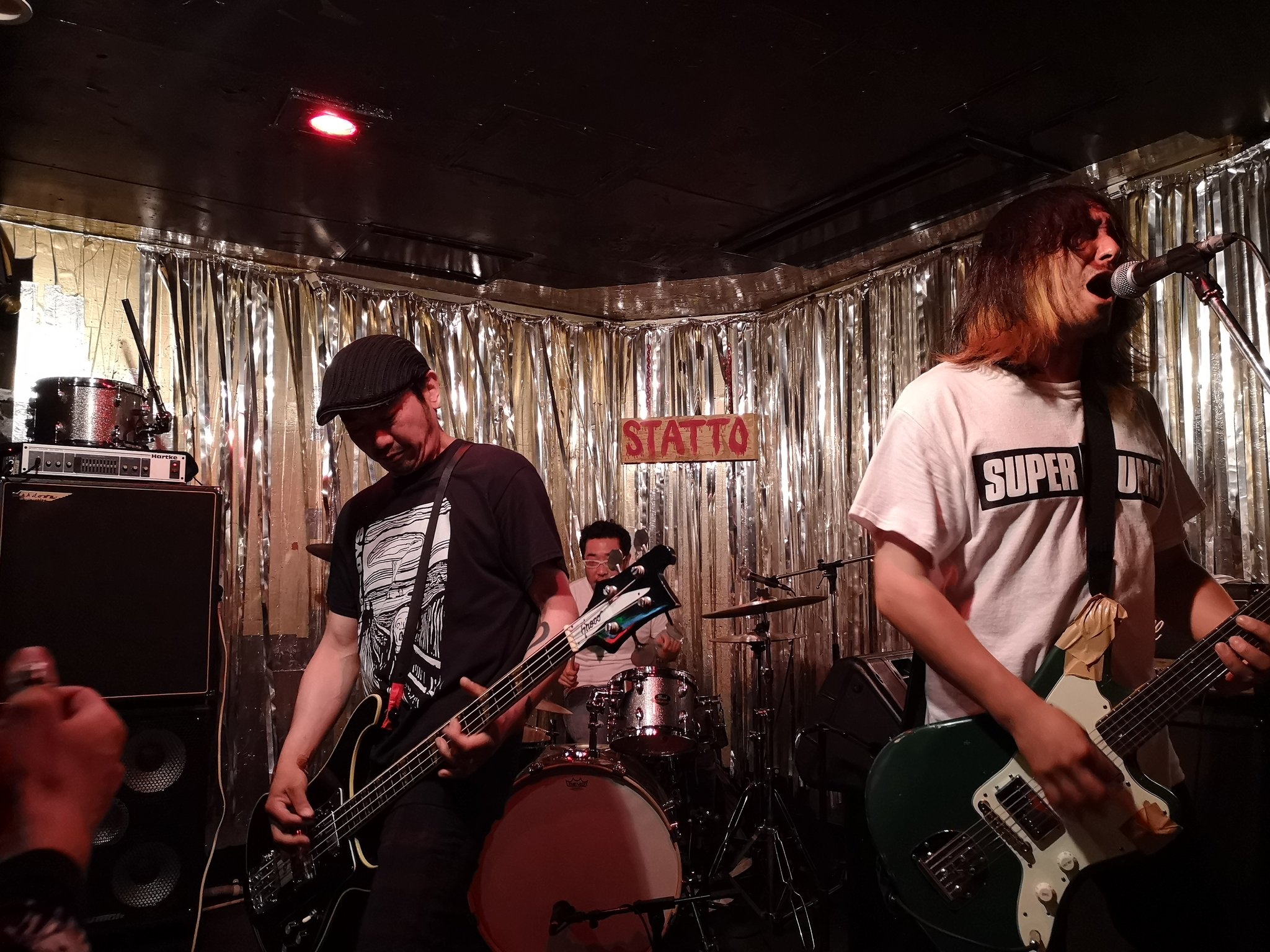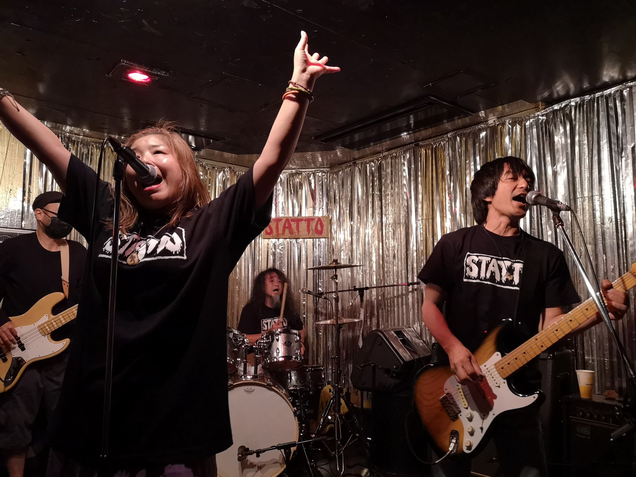 写真でぶれるのメンバーさんが着てるのは、このコロナの状況の中で有志のバンドが集まって作ったSTATTO応援&売り上げ寄付Tシャツ。
