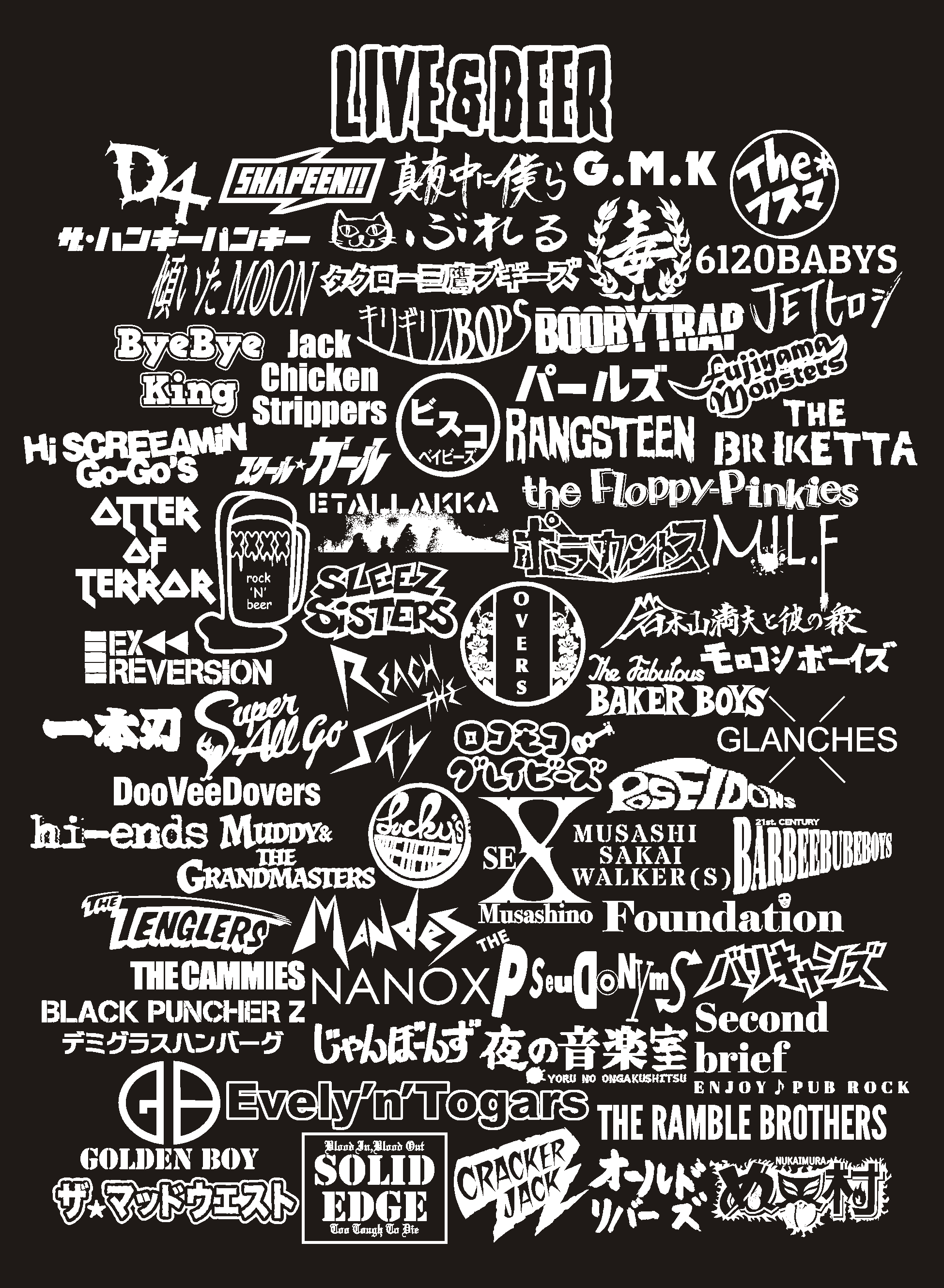 背中のプリントは協賛したたくさんのバンドのロゴ。