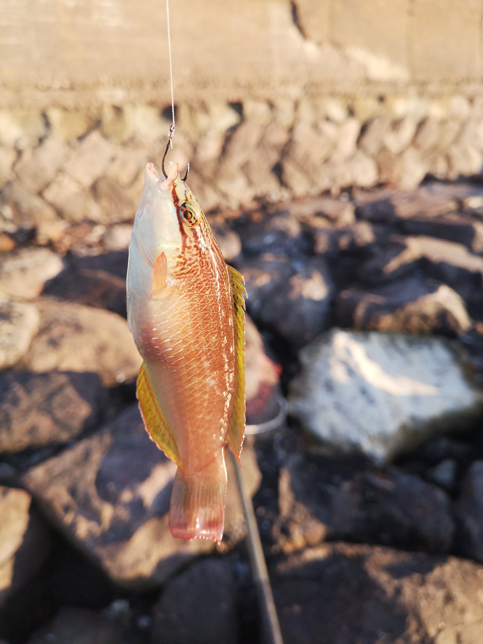 で、やっぱり激シブ。フグとベラが1匹づつ釣れただけ。