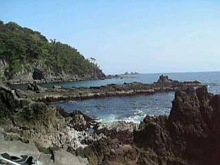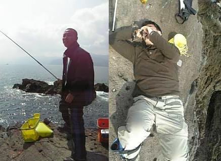 磯の上の方に車を止め、草木の生い茂った林の獣道みてーなとこを、竿、タモ、クーラー、バッカン、各々リュックを背負って下り、また木々の間を上り、崖を下り、磯の岩場を乗り越え、汗だくになってヒーヒー言いながら、ようやく竿の出せそうな磯にたどり着きました。